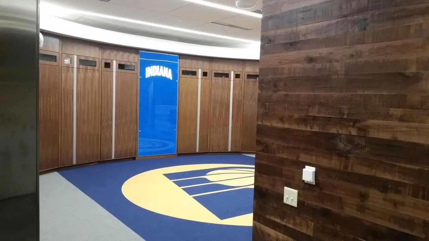 The Pacers are in Indiana for the long haul with a new deal that will retain them in the city for the next 25 years and that means it’s time to do some renovations. The locker rooms, practice facility, and restaurant utilized sustainably harvested American black walnut paneling in a rustic grade. The warm chocolate tones of the walnut are accompanied by original rustic mill marks from when the material was originally processed. A soft UV oil finish was applied to bring the planks to life and pop the beautiful natural color of the woods.