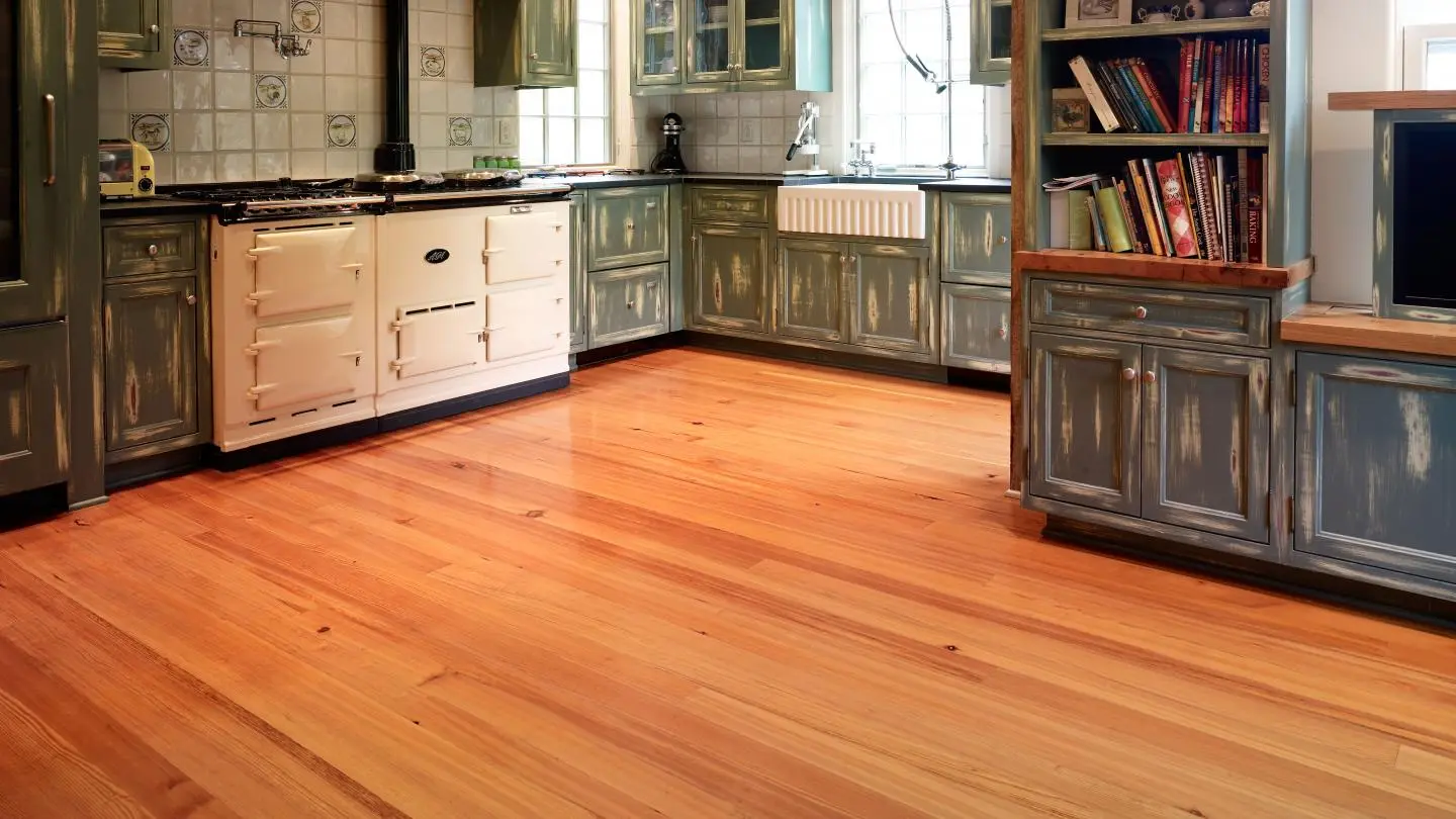 Heart Pine is literally the wood that builds America and it’s a mainstay today when it comes to reclaimed wood flooring. The select grade provides a long straight vertical grain that has no problem keeping up with the everyday hustle and bustle in the home. The clean wood floors were paired with rustic textures provided by the authentic reclaimed wood beams that were utilized through the home. The natural color tones and textures of the wood provide an authenticity that just can not be faked with modern woods.